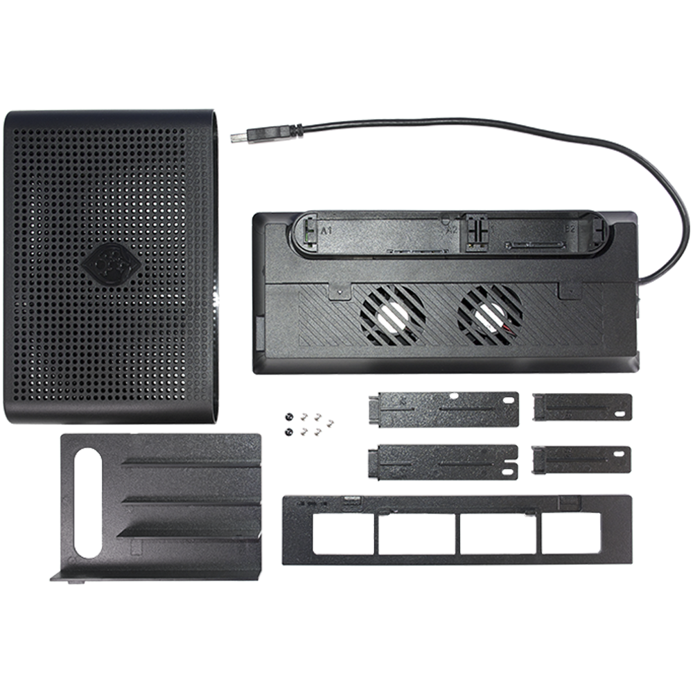The Media Hub XS™ for Xbox One™ S and X provide the gamer with the storage flexibility they need to take full advantage of their entire game library and the Game Pass service. The Media Hub XS™ is a premium storage bay solution that allows the addition of up to two 2.5" internal drives or one 2.5" and a second 3.5" internal drive. Avoid deleting and re-installing games continuously as the Media Hub XS™ allows for a storage capacity to the Xbox One™ limit of 16TB. The high speed drive enclosure support standard, SSD, and hybrid drives. Two front USB ports provide easy access when you need and high velocity cooling ensures even longer playtime. The built in vertical stand is custom designed to match your console and showcase it in the vertical position.